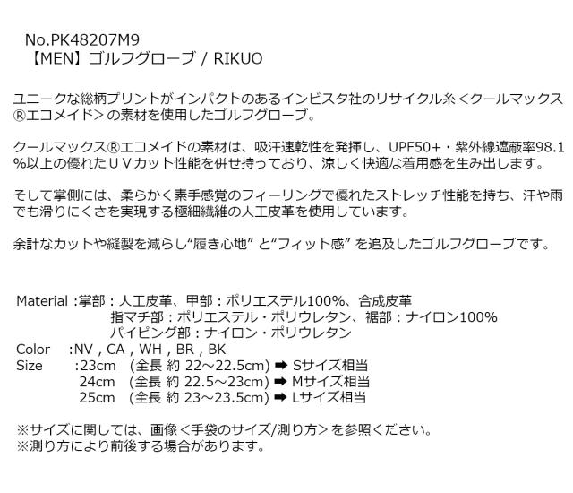 PELLE:K ペレック メンズゴルフグローブ RIKUO 左手用 【IR】