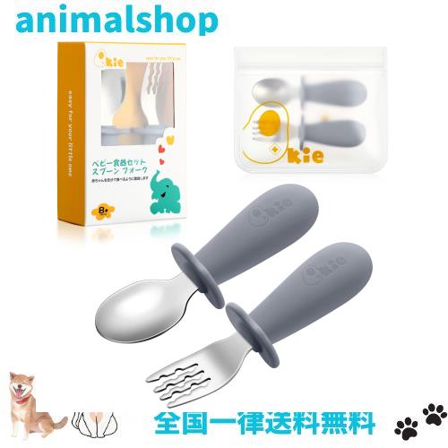 ◆商品名:スプーン フォーク セット 離乳食 スプーン 自分で食べる ベビー スプーンフォーク 収納袋付き 8ヵ月以上へ (グレー)