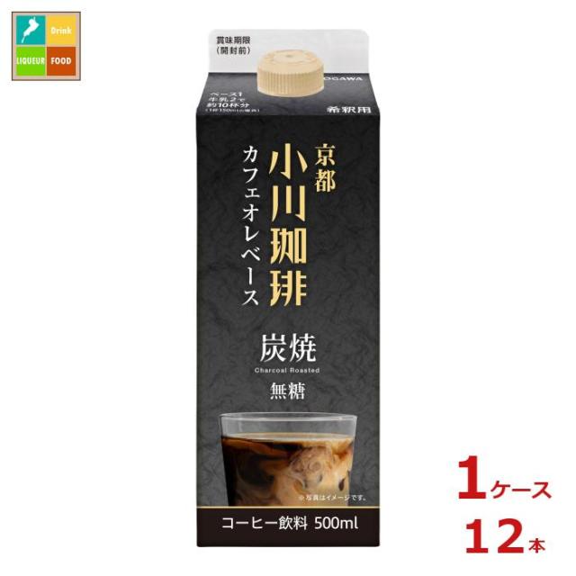 送料無料 京都 小川珈琲 炭焼珈琲 カフェオレベース 無糖500ml紙パック×1ケース(全12本)