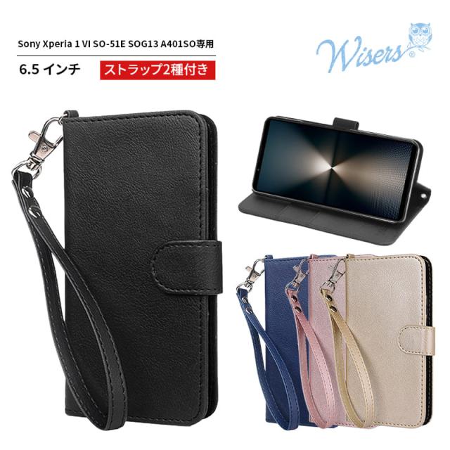 wisers Xperia 1 VI SO-51E SOG13 A401SO ケース 手帳型 スマホケース 対応 (全4色) ( カードホルダー / スタンド機能付き ) ストラップ 2種付き ( ハンドストラップ / ネックストラップ ) 2024年
