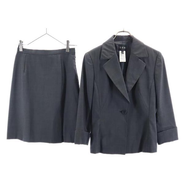 アイシービー 日本製 スカートスーツ 上下 セットアップ 9 グレー iCB テーラードジャケット レディース