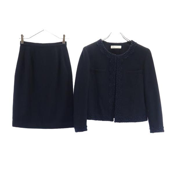 ケティ ウールブレンド スカートスーツ 上下 セットアップ 9号 紺 KETTY ノーカラージャケット レディース