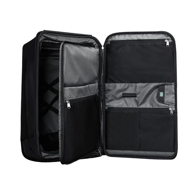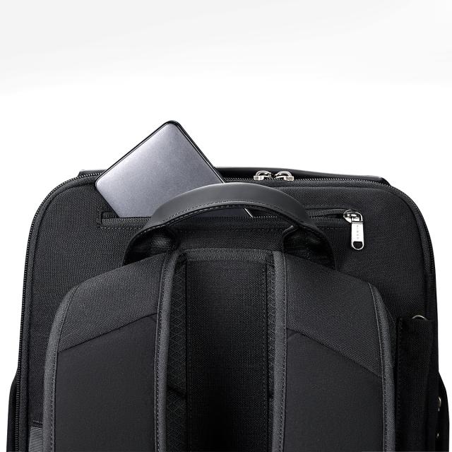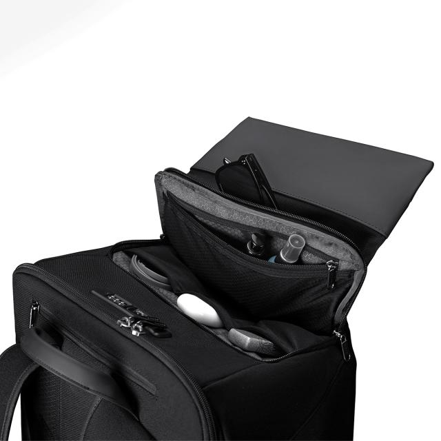 KORIN DESIGN Travlo は、大型リュックによくある問題点を解決し、より荷物を入れやすい設計にアップグレードしています。バッグの中は三層構造で、パソコンや着替えなど仕事と私物を仕分けでき、プライバシー対策もできます。このデザインによって荷物が整理整頓でき、簡単に出し入れしやすくなりました。