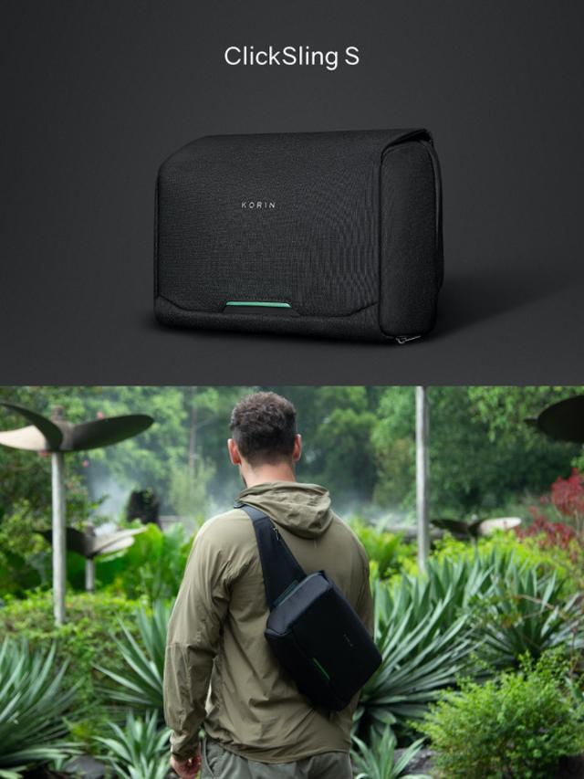 KORIN DESIGN Travlo ClickSling S は、マグネットで開閉するクイックアクセスポケットを多数備えており、スマホやイヤホンなど使用頻度の高いアイテムは楽々出し入れ可能なスリングバッグ。メイン収納はファスナー式でがばりと大きく開くので収納力は抜群。スリングバッグならではの手軽さに容量、機能性を合わせたトラベルシーン向けのボディバッグです。