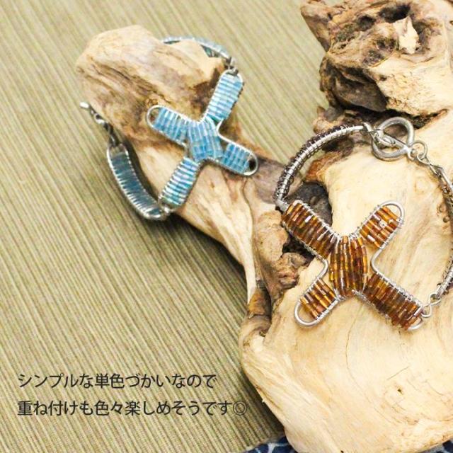 バングル シンプル カジュアル ! クロスシェイプ ビーズ ブレスレット エスニック アジアン フェスコーデ 2025年春夏