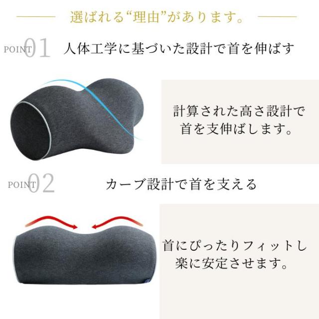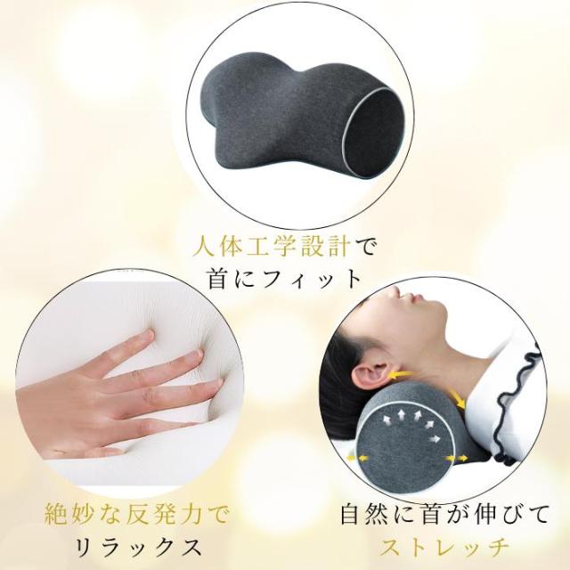 このネックピローは首を気持ちよく牽引ストレッチし正常な頚椎の形状をサポートします。