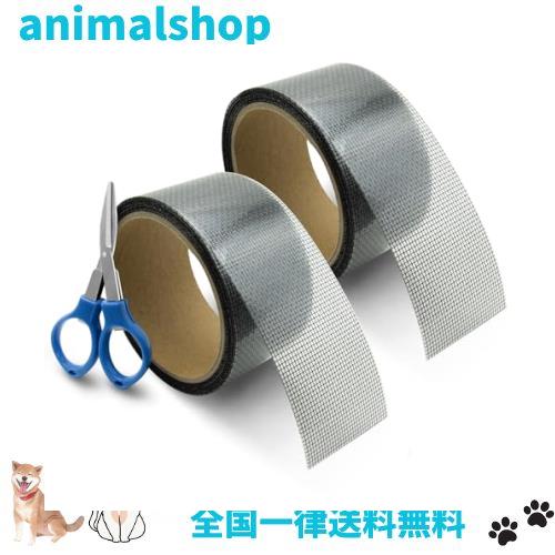 【セット内容】網戸補修テープ×2枚 + ハサミ×1個 、サイズ:約幅5cm×全長5m。色:ブラック