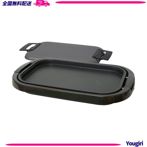 ◆商品名:[山善] ホットプレート 大型 ワイド お手入れ簡単 フッ素加工 着脱式プレート ワンタッチ操作 蓋付き ブラウン YHE-B132(T)