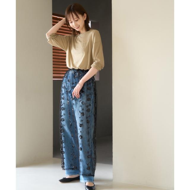 ・シンプルなジーンズ、チノパン合わせでも女性らしいカジュアルコーデが完成。