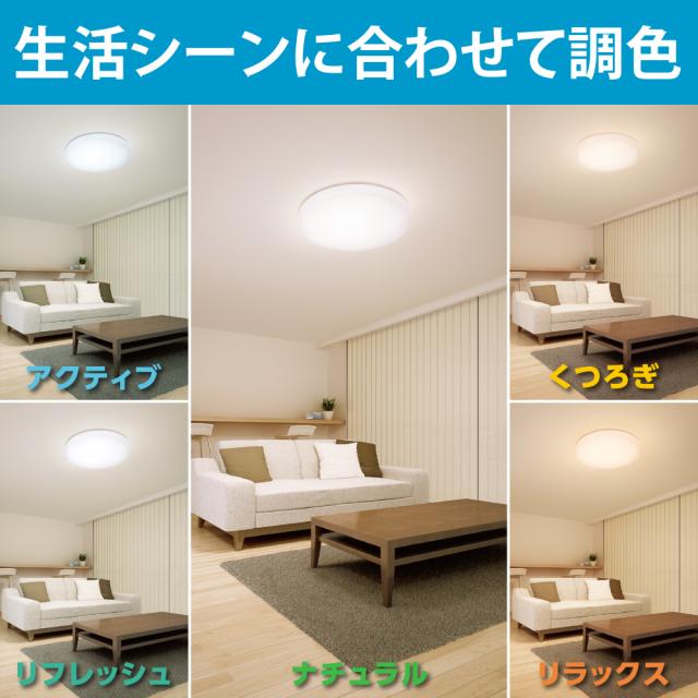| 商品説明 | ●調色機能で色が変えられる(昼光色〜電球色) ●HotaluX LEDシーリングライト国内製で5年保証だから安心 ●リモコンで簡単に調光・調色が可能。ボタンひとつでお部屋を快適に演出します。 ●シンプルデザインでどんな部屋でもマッチ。 ●リモコンで調光段階:5段階、調色段階:5段階。 ●LED常夜球も3段階の調整が可能。 ●虫・ホコリの入りにくい構造。 ※リモコンホルダーは付属されておりません。 ※ホタルック機能はありません。 ■スペック ・商品サイズ(mm):外径464×高さ135 ・質量:約1.0kg ・器具光束:5400lm ・適用畳数:〜14畳用 ・定格電圧:AC100V(50/60Hz) ・消費電力:42W ・色温度:昼光色6500K/電球色2700K ・演色性:Ra83 ・消費効率:128.5lm/W ・設計寿命:40000時間 ※1日10時間点灯の場合 ※寿命は光束が70%まで低下するまでの時間を推定したものであり、製品の寿命を保証する物ではありません。 ■機能 ・常夜灯調光:3段階 ・5段階調光 ・スリープタイマー:30分、60分 ・防虫:○ ・チャンネル切替:○(2ch) ※リモコンホルダーは付属されておりません。 ※海外ではご使用いただけません。 |