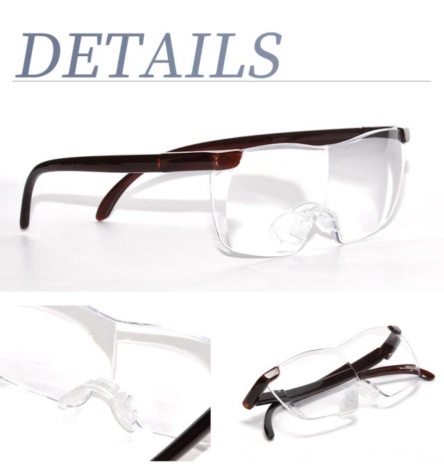 ルーペ 1.6倍 メガネ型 虫眼鏡 拡大鏡 眼鏡型 丈夫 携帯 シニアグラス フレームレス
