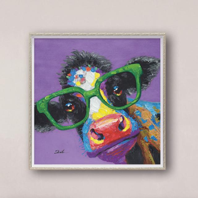 アートパネル オイルペイントアート 『カウ グラス』 63×63cm ( 絵画 絵 アート インテリア 額 額入り 壁掛け 牛 動物 カラフル ポスター アートフレーム アートポスター ウォールアート パネル 額付き 額縁 壁飾り リビング )