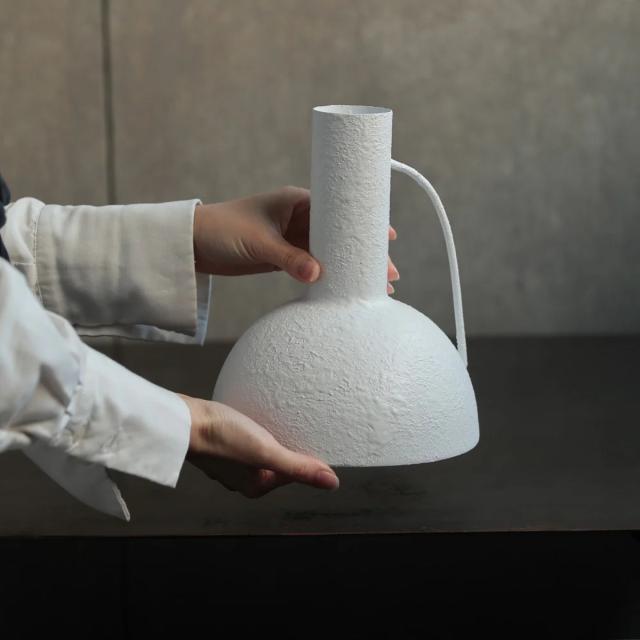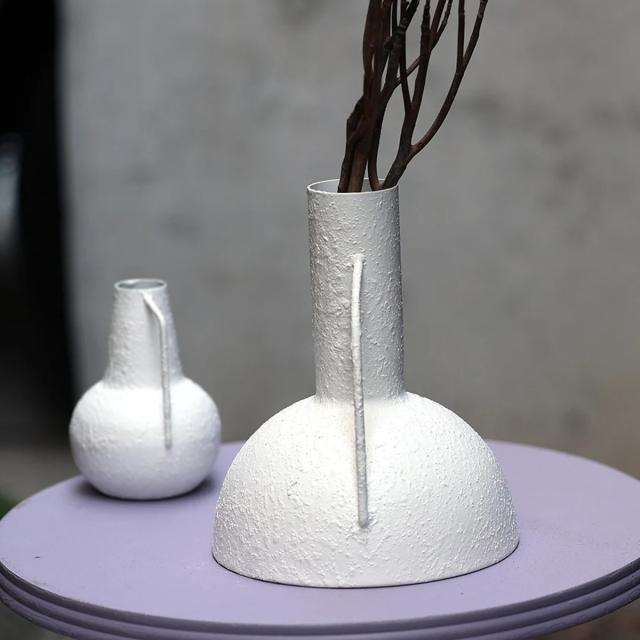 ざらりとした凹凸のある珍しい塗装法が特徴のフラワーベース Flatです。ドライフラワーやフェイクフラワーに最適で、光を反射しないマットなホワイトカラーがお花をより引き立ててくれます。