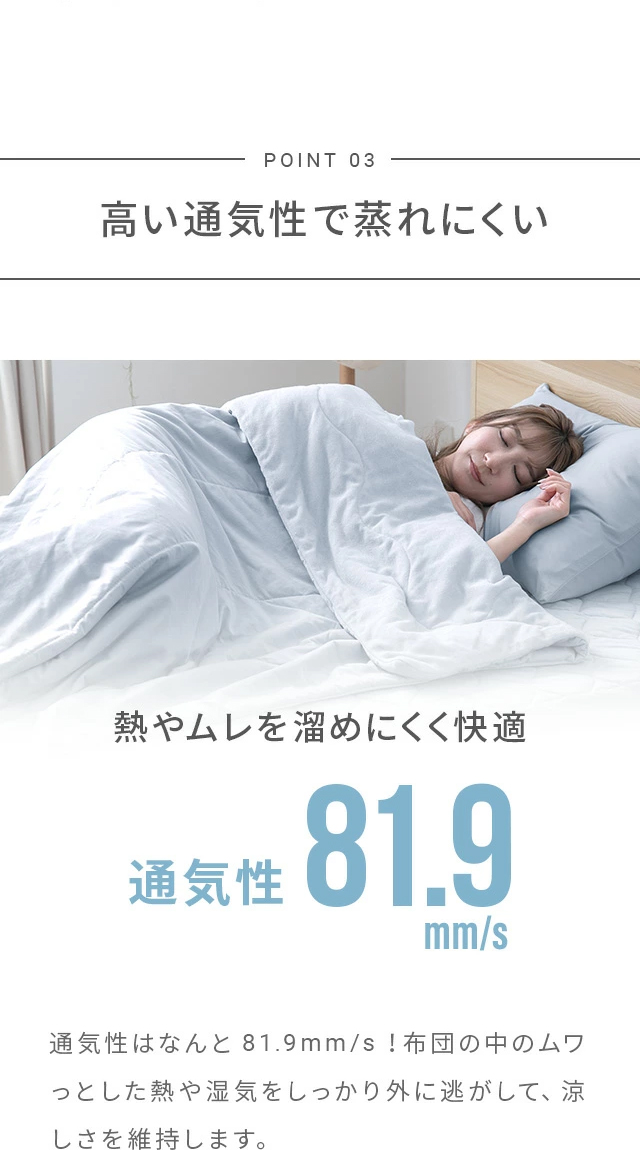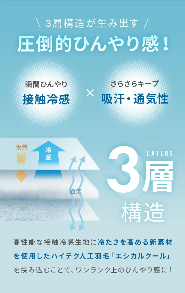 中綿 - 上層…冷感人工羽毛80g/㎡(ポリエステル100%)