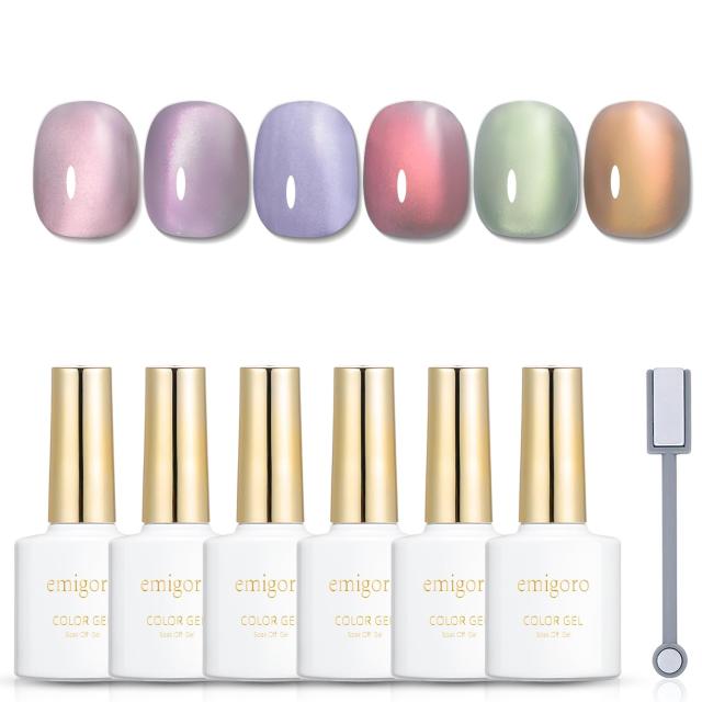 emigoro マグネットジェル 磁 石付き キャッツアイジェル マグネット キラキラ マグネットネイル カラージェル 3d 猫目 セルフネイル 6色