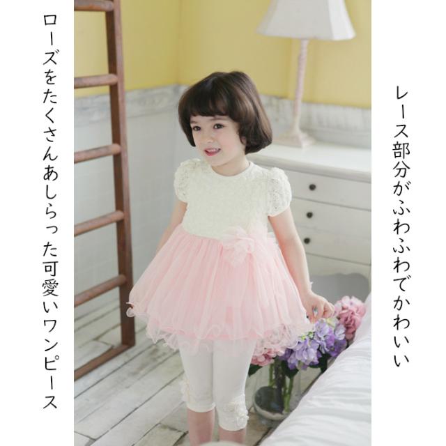 子供 ワンピース 女の子 夏 半袖 たっぷりローズワンピース 子供服 ワンピース 発表会 パーティ 結婚式 子ども キッズ ワンピース