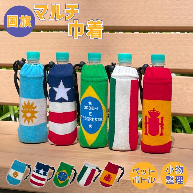 ★ 送料無料 ★ 国旗柄 マルチ 巾着 ペットボトルカバー ニットカバー 【 アルゼンチン スペイン アメリカ ブラジル イタリア 】