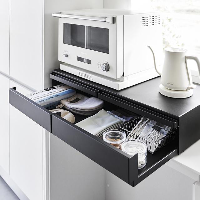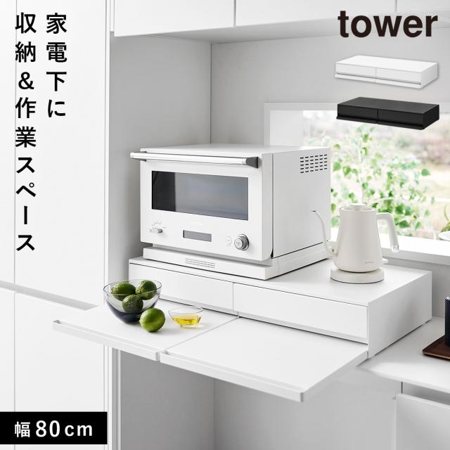 ツーウェイキッチン家電下引き出し&スライドテーブル タワー W80 山崎実業 tower 家電下スライドテーブル レンジ 下 スライドテーブル キッチン おしゃれ モノトーン ホワイト ブラック 1697 1698 メーカー直送