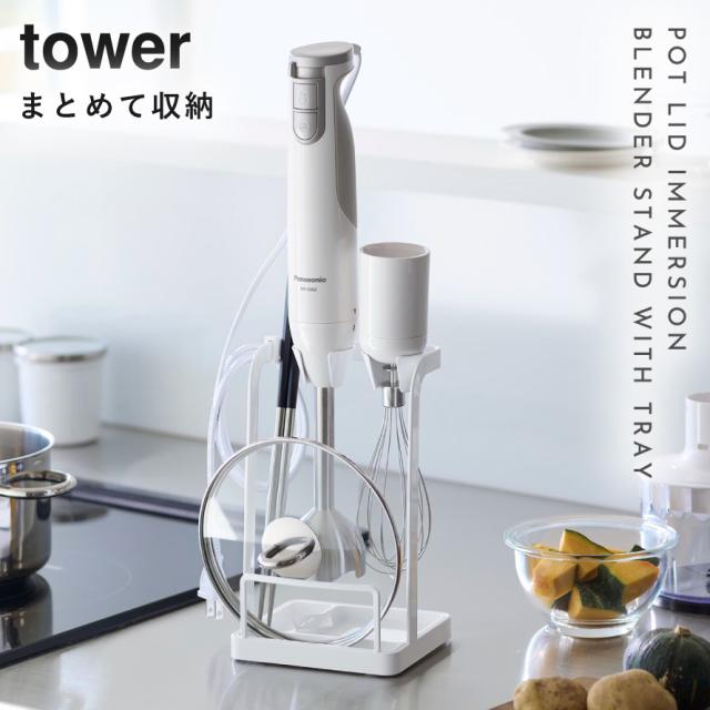 トレー付き鍋蓋&ハンドブレンダースタンド タワー 山崎実業 tower 鍋蓋 スタンド おしゃれ モノトーン ブラック ホワイト1614 1615