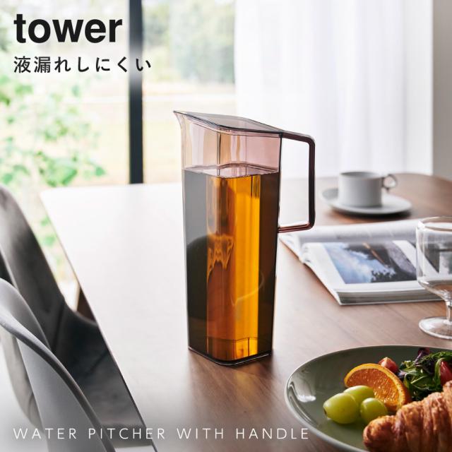 麦茶ポット 冷水筒 ハンドル付き 1.2L ウォーターピッチャー ウォータージャグ ウォーターボトル 水差し タワー 山崎実業 tower 食洗機対応 冷蔵庫 スリム ドアポケット 洗いやすい スタイリッシュ おしゃれ モノトーン ブラック ホワイト