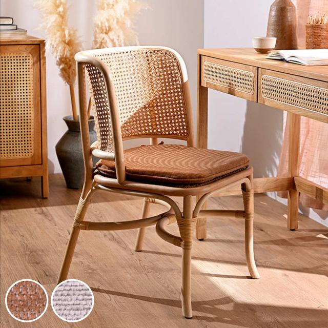座面はラタンのカゴメ編みを施しております。天然ラタン製品同様、1点1点職人の手で丁寧に編まれています。通気性にも優れているので、年中快適にお使いいただけます。