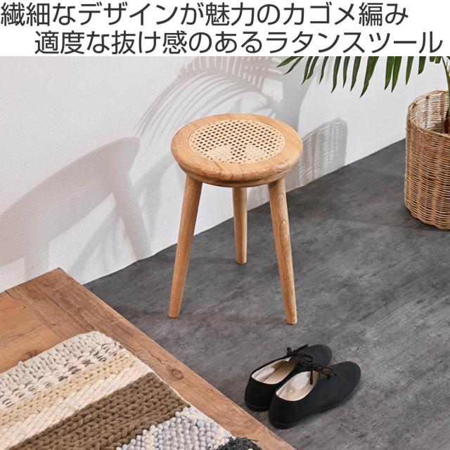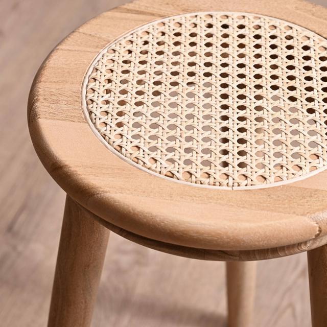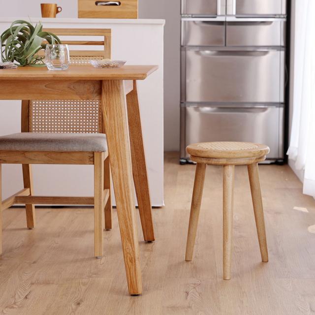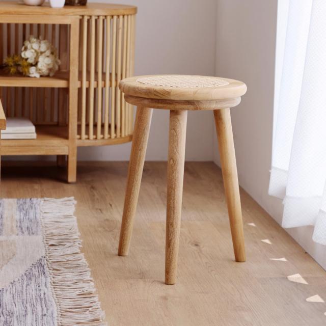 スツール ラタン 高さ44cm チーク 天然木 CALM ( ラタンスツール 椅子 リビング 腰かけ 籐 籐製 かごめ編み 1人掛け チェアー イス いす リビングチェア ダイニングチェア 完成品 )