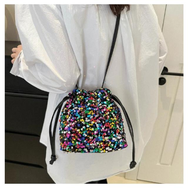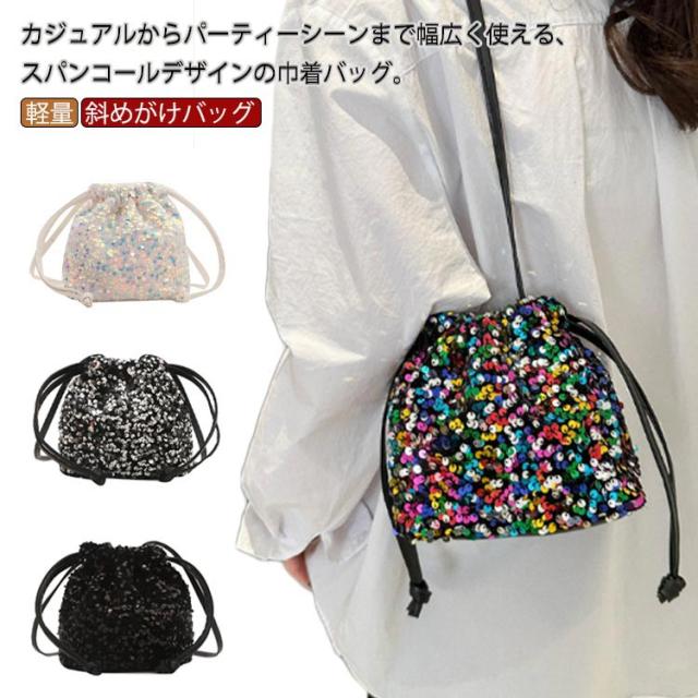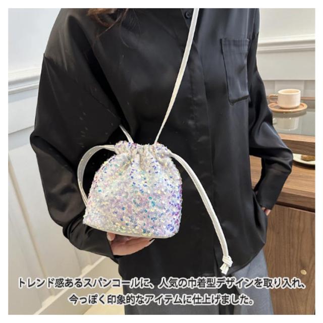 スパンコールバッグ レディース スパンコール バッグ 巾着 巾着バッグ 巾着袋 ショルダー ショルダーバッグ 斜めがけバッグ ミニバッグ 小さめ ミニ おしゃれ オシャレ シルバー 軽量 結婚式 和装 浴衣 成人式 袴 パーティーバッグ キラキラ