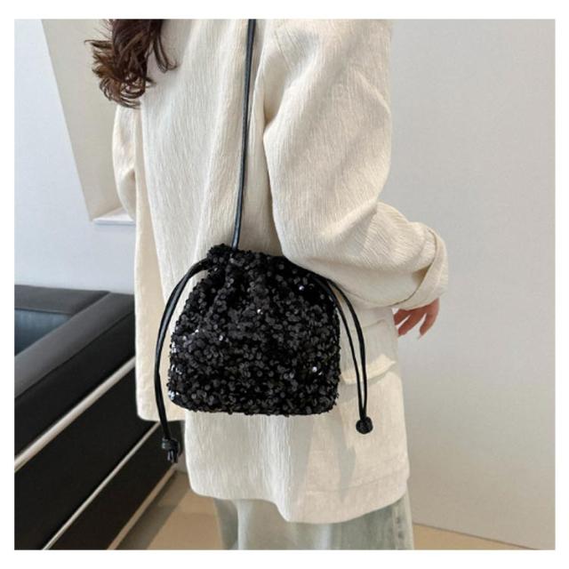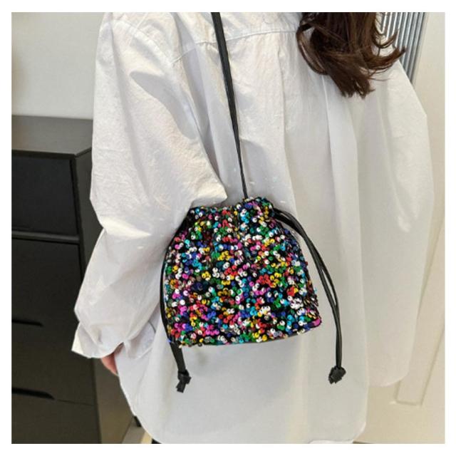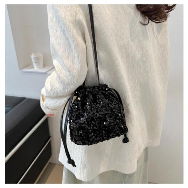 | カジュアルからパーティーシーンまで幅広く使える、スパンコールデザインの巾着バッグ。 きらきら輝くスパンコールならではの素材感が魅力。 トレンド感あるスパンコールに、人気の巾着型デザインを取り入れ、今っぽく印象的なアイテムに仕上げました。 小さめなサイズ感が、コーディネートした時にスタイルを良く見せてくれます。 ハンドクリームやスマホを入れるのにちょうど良く、普段使いから、ちょっとしたお出かけ、結婚式などのオケージョンシーン、パーティなどの特別な日にもお使いいただけます。 | |
