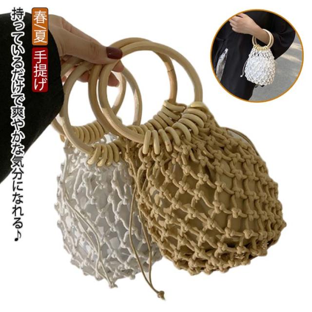 かごバッグ レディース サマーバッグ 籠バッグ 小さめ 丸型 ハンドバッグ 手提げ 鞄 カゴバッグ 透かし編み 夏バッグ クロシェ編み バッグ 編みバッグ 内袋 ナチュラル カジュアル おしゃれ かわいい 浴衣 和装 デード 夏 花火大会