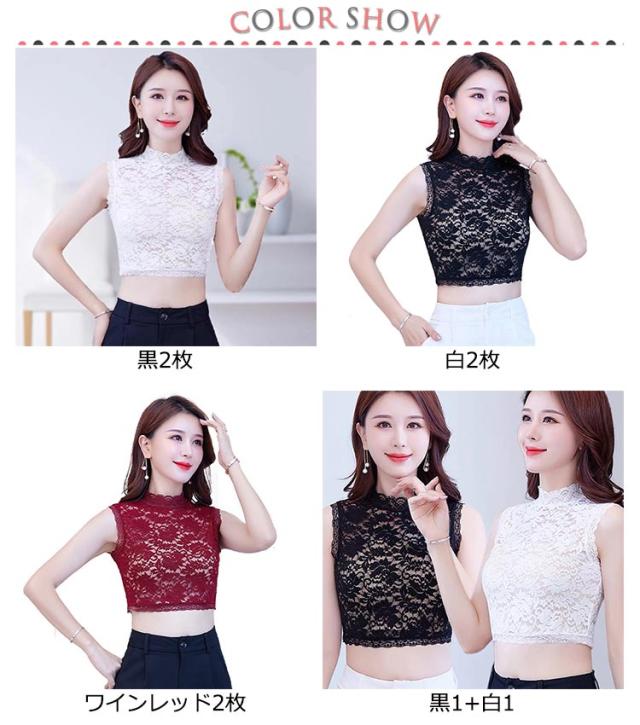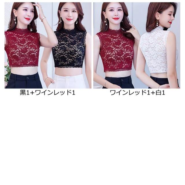 2枚入り!つけ襟 付け襟 レディース フェイクカラー 総レース ハイネック 立襟 重ね着用 ノースリーブ 偽の襟 シースルー 透け感 女性用 婦人用 アクセント 可愛い おしゃれ きれいめ 黒 白 ワインレッド ブラック ホワイト