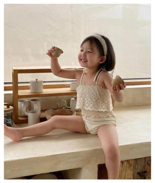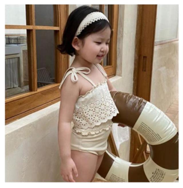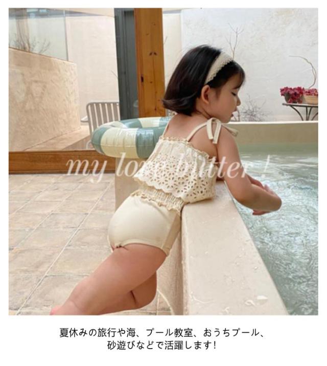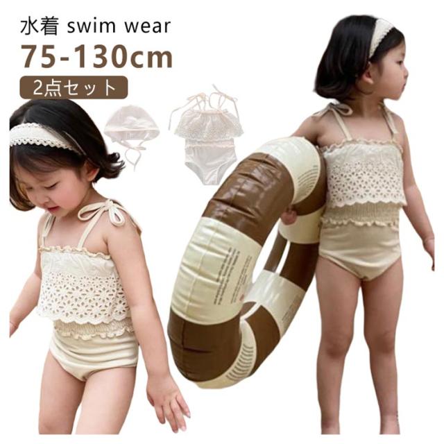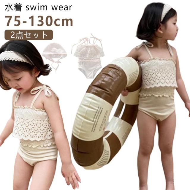 2点セット 水着 女の子 スイムキャップ ベビー水着 女の子 フリル水着 75 キッズ水着 韓国ファッション 女の子 水着 女児 ワンピース 子供用 キュート ベージュ プール授業 みずぎ 保育園 幼稚園