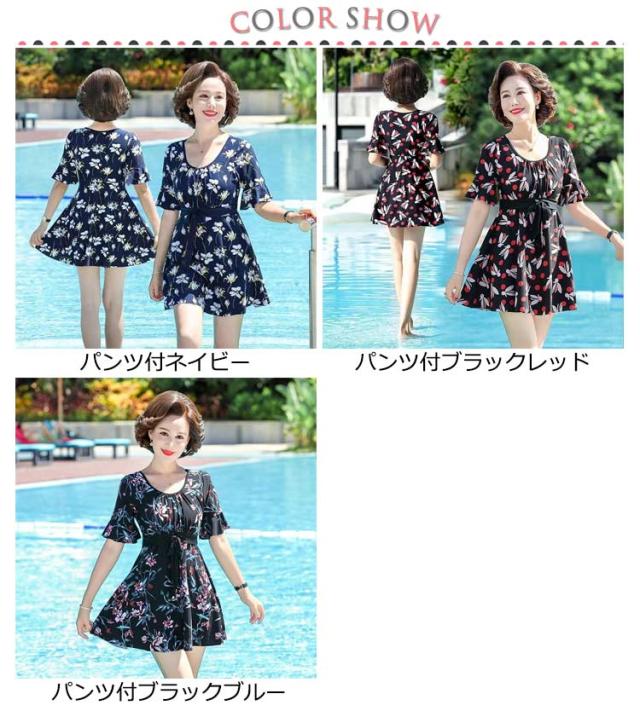 体型カバー ママ 水着 50代 水着 ワンピース 体型カバー水着 レディース ぽっちゃり 60代 40代 50代 ママ水着 パンツ付き 露出控えめ オトナ女子 フレアワンピース ウエスト お尻 太もも カバーアップ 送料無料