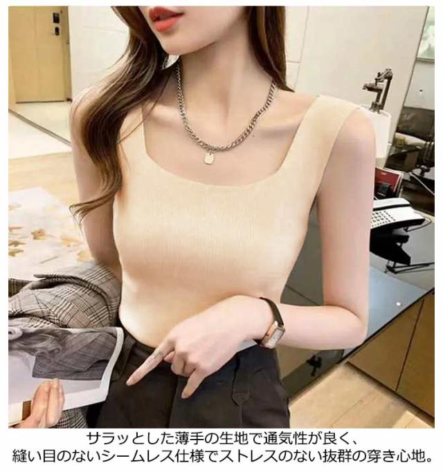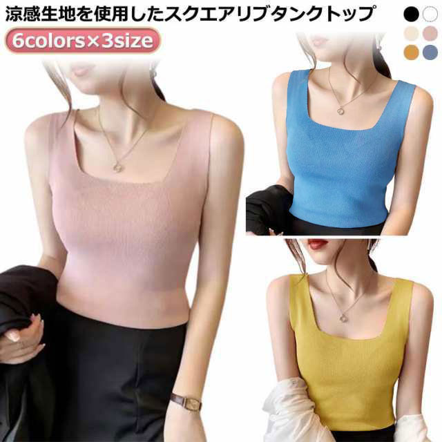 スクエアタンクトップ レディース タンクトップ スクエアネック 涼感 透けにくい レディース 吸汗 速乾 スクエアネック インナー ストレッチ タンクトップ シームレス スリム 薄手 タンク インナー 下着 肌着 リブ 白 大きいサイズ 黒 細身 ピンク タンクトップ