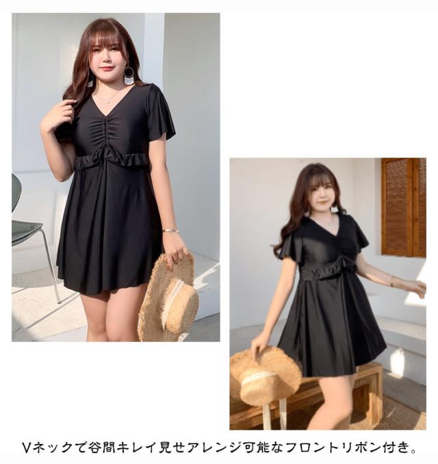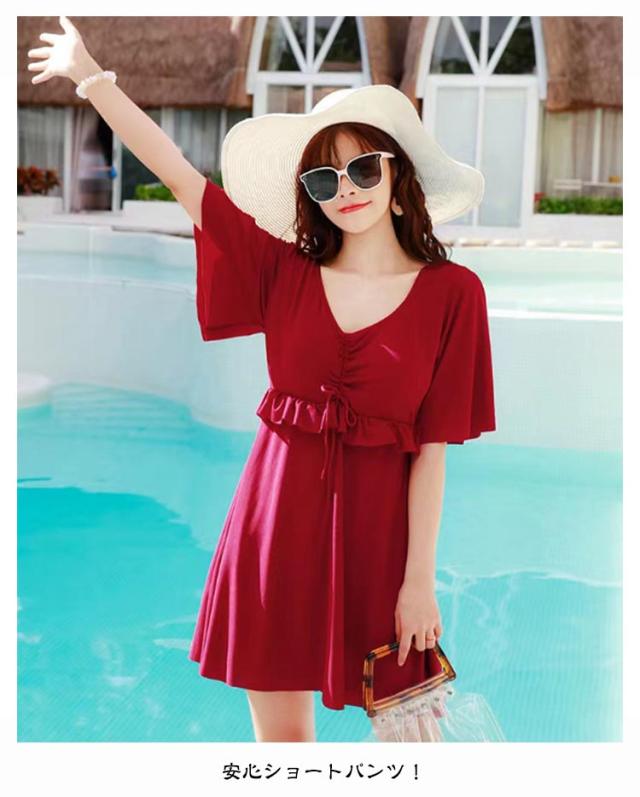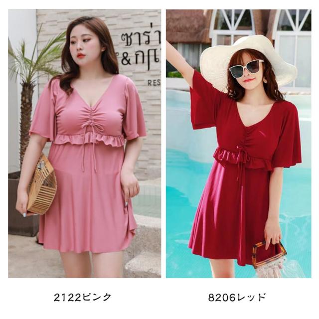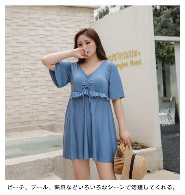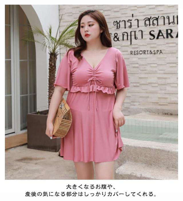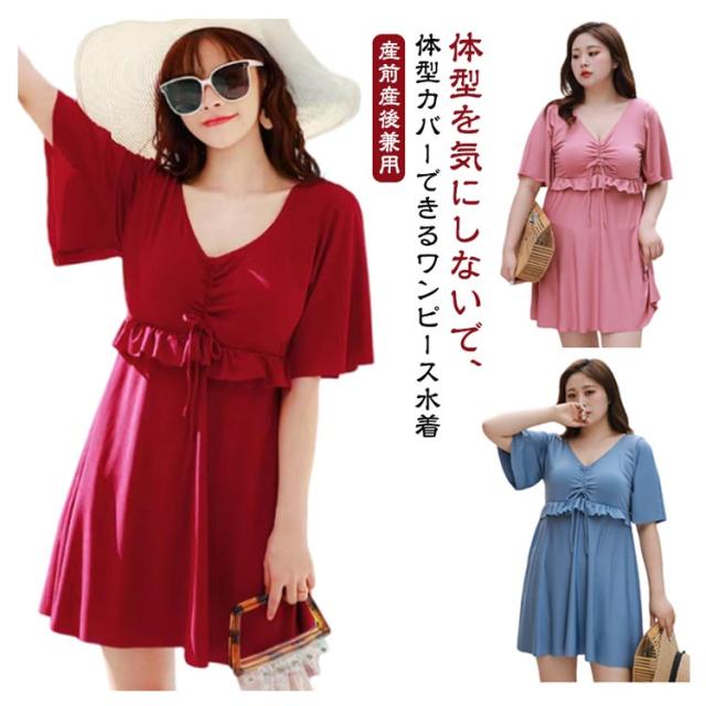 水着 レディース ワンピース 体型カバー 大きいサイズ ぽっちゃり水着 ママ水着 オトナ女子 半袖 みずき パッド付き マタニティ ワンピース 妊婦服 妊婦 水着 フリル袖 おしゃれ Vネック きれいめ 産前産後兼用 露出控えめ 夏 スイムウェア プール 海水浴 送料無料