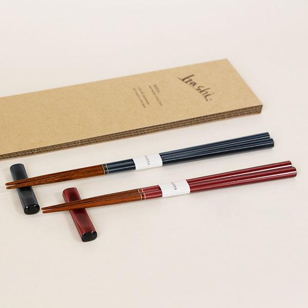 箸・箸置きは、落ち着いた深い青色、温かみのある赤色が施されており、どちらもエレガントな雰囲気を演出します。