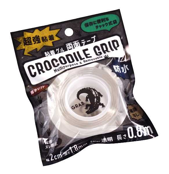 超強粘着両面ゲルテープ クロコダイルグリップ 透明 幅2cm×長さ0.8m (100円ショップ 100円均一 100均一 100均)