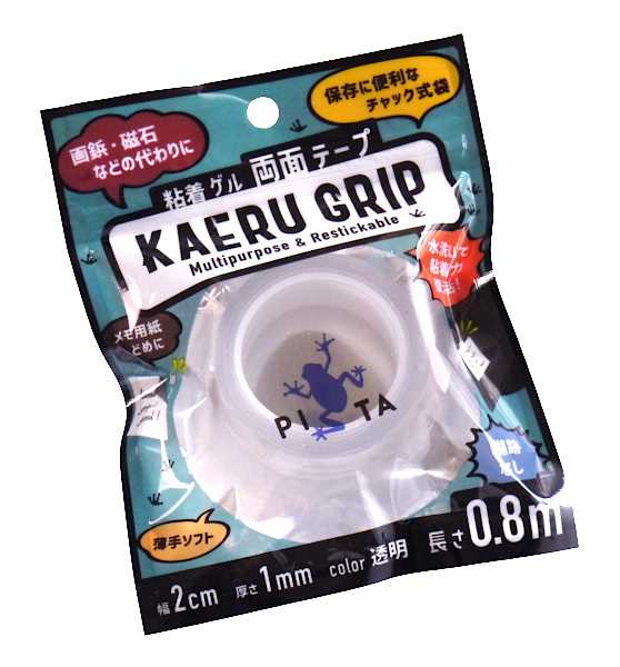 仮どめ両面粘着ゲルテープ カエルグリップ 透明 幅2cm×長さ0.8m (100円ショップ 100円均一 100均一 100均)