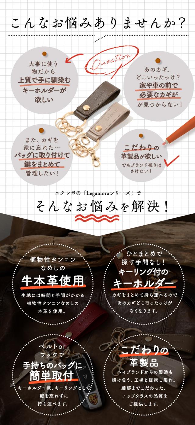 キーホルダー キーリング 革 ブランド Legamora 公式 メンズ おしゃれ かわいい レディース 本革 金具 車 家 スマートキー フック お揃い ペア キーホルダー カップル 紛失 防止