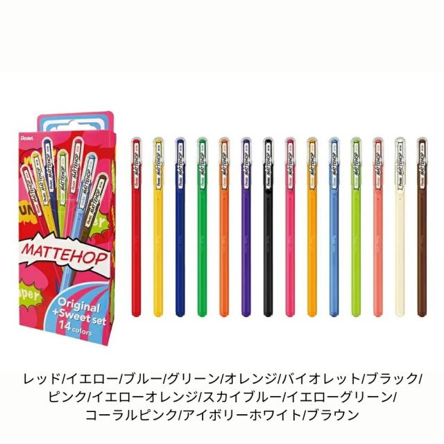 ぺんてる MATTEHOP 14色セット オリジナル スイート K110-V14ST メール便対応 カラーペン 水性 セット 子供 大人 デコレーション ペン イラスト 文字 マットカラー