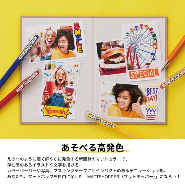 えのぐのように濃く鮮やかに発色する新開発のマットカラーで、存在感のあるイラストや文字を描ける!