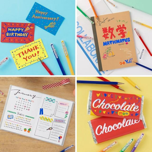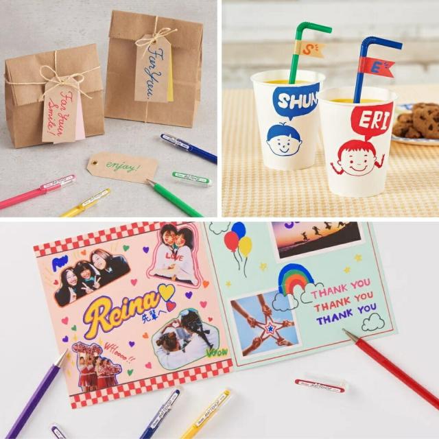 写真、マスキングテープ、お菓子の紙箱などにも濃く鮮やかに描くことができます。
