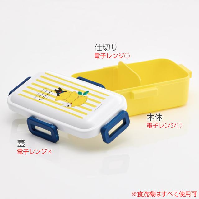 弁当箱 1段 530ml 抗菌ふわっと弁当箱 リサガス レモン柄 ( リサとガスパール ランチボックス 食洗機対応 レンジ対応 一段 抗菌 ドーム型 4点ロック 日本製 仕切り付き 銀 AG 抗菌加工 食洗機OK レンジOK お弁当 弁当 一段弁当 )