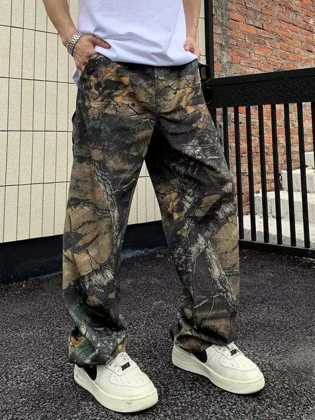 迷彩マーブルプリント ジーンズ 018 ダメージ加工風 B系 HIPHOP系 ストリート ダンス ヤクザ ヤンキー オラオラ 悪羅悪羅 オラオラ系 部屋着 服 メンズ ファッション
