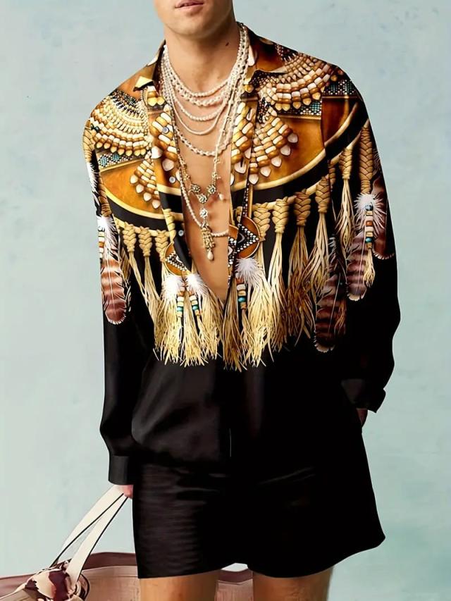 インディアンモチーフプリント 長袖 シャツセットアップ ジャージ 007 上下 白黒 部屋着 ヤクザ ヤンキー オラオラ系 悪羅悪羅 ホスト 服 メンズ ファッション