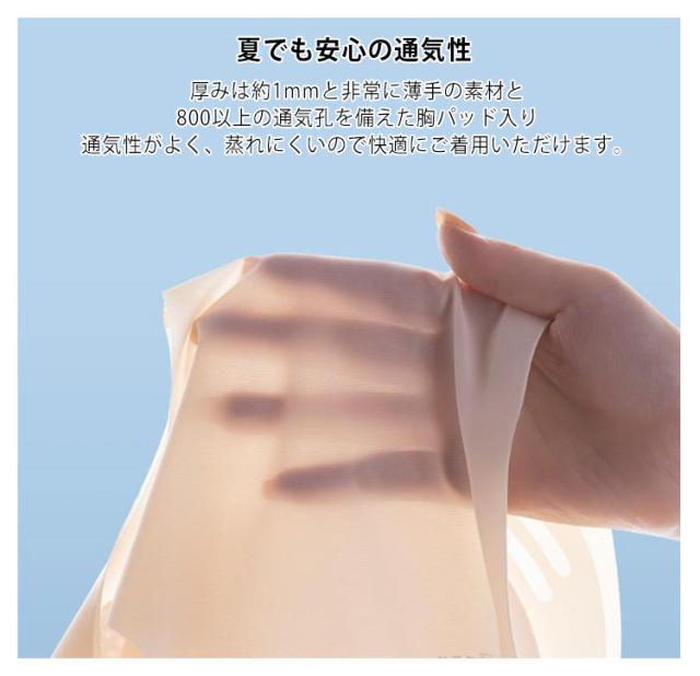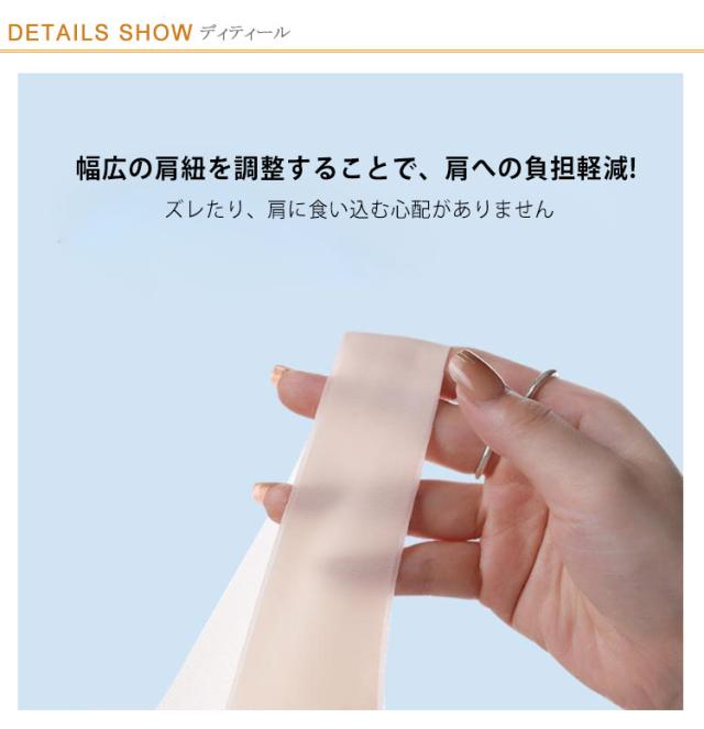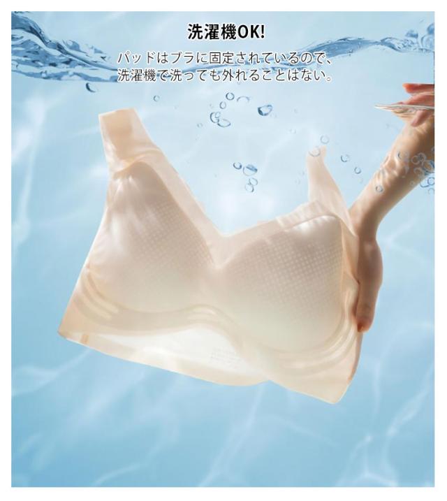 | ノンワイヤー・薄くて軽い! 接触冷感 ゼリーブラ ●【ゼリーのょうなはき心地】 軽くて柔らかくて、バストをふわりと包んでくれるNEWフィットが新登場。 ●Vネックはすっきりとシャープな印象を与え、女性らしさを引き立て、デコルテをより美しい見せます。 ●「無縫製」+「ノンワイヤー」 締め付け感セロのシームレスブラ ●幅広の肩紐を調整することで、肩への負担軽減! ズレたり、肩に食い込む心配がありません ●さらさらとした、心地よい肌触り。 肌に負担のないプリントタグチクチクしない ●夏でも安心の通気性 厚みは約1mmと非常に薄手の素材 通気性がよく、蒸れにくいので快適にご着用いただけます。 ●まるで着ていないような軽さ ワイヤーやホックなどの金具をなくした軽量設計。 まるで着ていないような軽さを実現しました! ●ワイヤーがなくても安定感のある 「ゼリーゴム」を使用しているため、 どんなに動いても立体感のあるバストをキープできます。 ●洗濯機OK! パッドはブラに固定されているので、 洗濯機で洗っても外れることはない。 ●丸めて畳める柔らかさ コンパクトに畳めるので、収納や持ち運びも便利です。 | |