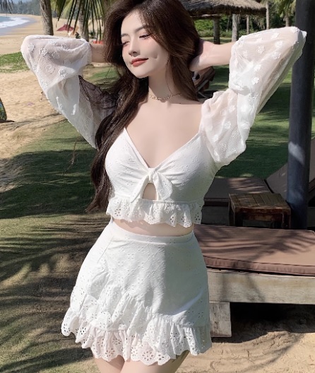 水着 ビスチェビキニ 長袖 体型カバー 二の腕 お腹 お尻 太もも 日焼け防止 ジム スポーツ 花柄 白 夏 リゾート 海 ビーチ 温泉 プール 海水浴 水泳 バカンス 盛れる セクシー 大人可愛い 個性的 10代 20代 30代 トレンド 人気