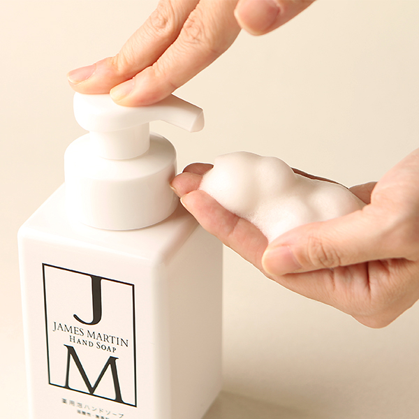 医薬部外品薬用泡ハンドソープ すすぐ前にしっかりと泡立てないと、使用したハンドソープによってはヌルつきがとれるまでに時間がかかったり、すすぎ不足から洗浄成分が残り手荒れを引き起こす可能性もありますが、ジェームズマーティンのハンドソープは 泡のままでてくるので、すすぎ時間が短いのも特徴の一つであり、ヌルつかず、しっかり手肌を洗浄することができます。