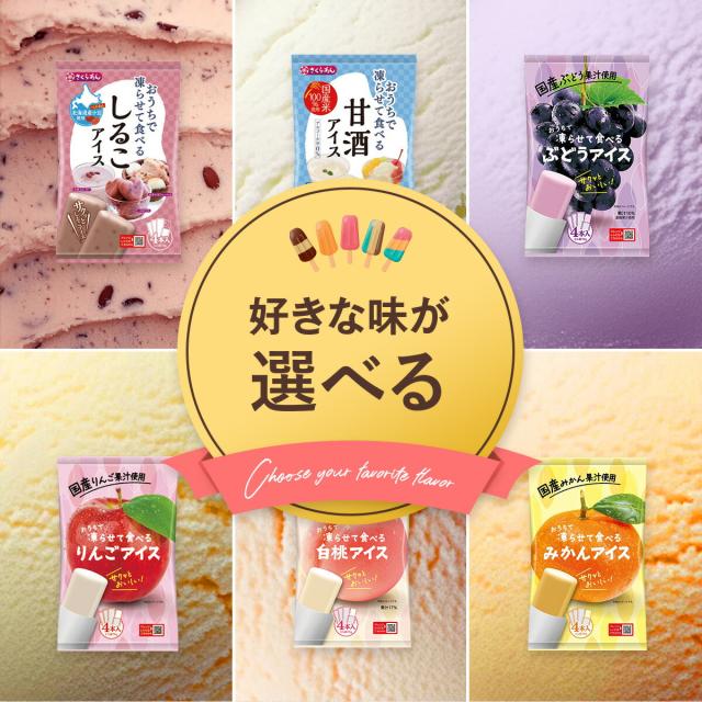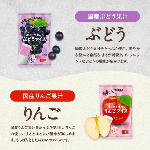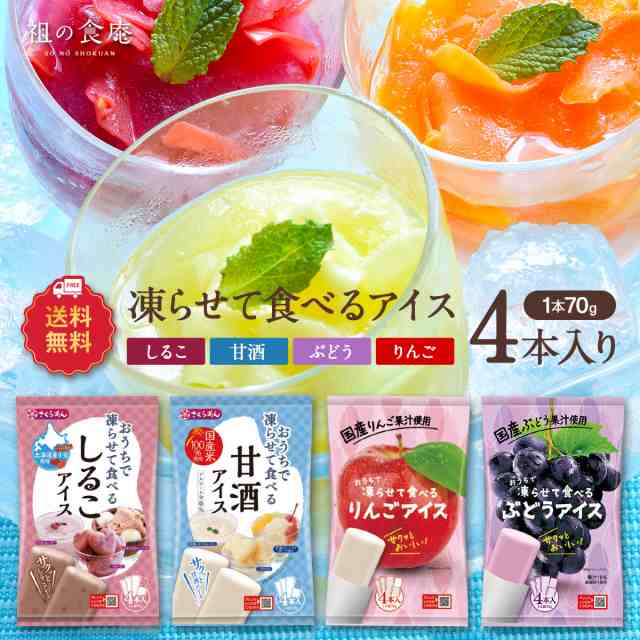 おうちで凍らせて食べるアイス4種類から選べる!⇒ぶどう・りんご・しるこ・甘酒・みかん・白桃(各70g×4本入り) シャーベット 果物 フルーツ