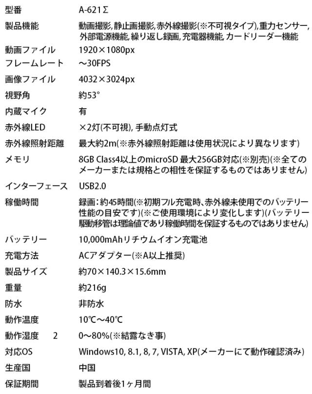 A-621Σ フルHD モバイルバッテリー偽装型カメラ