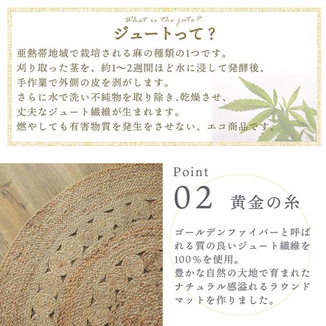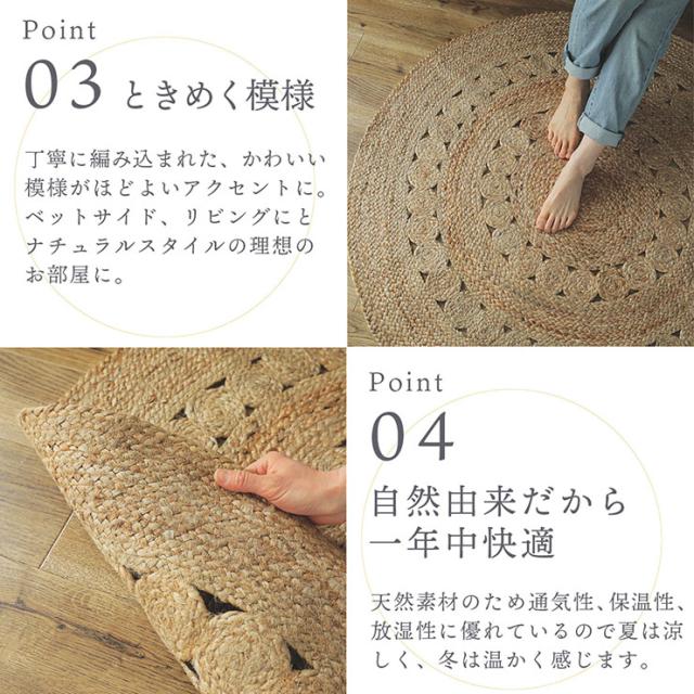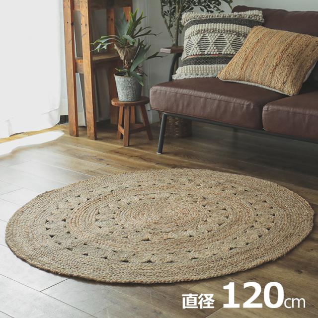 ラグ カーペット 直径120cm 円形 ジュートラグ 敷き物 ジュート100% ラグマット 円形ラグ ラウンドマット 玄関マット チェアマット ベッドサイド オールシーズン 麻 西海岸 おしゃれ ダリ